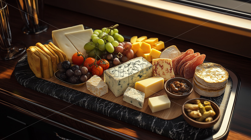 Home » Shop » AI Illustration » cheese gourmet plate with fruits and crackers
