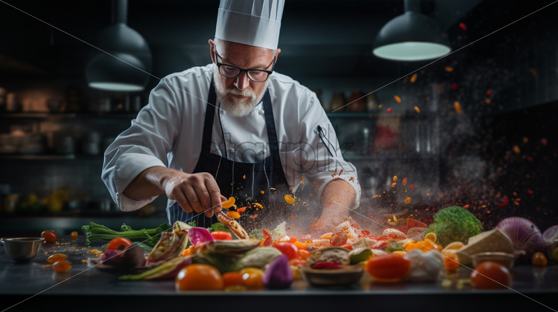 A charismatic Cajun chef in New Orleans, Louisiana, USA, cooking up a storm in a bustling French Quarter kitchen.