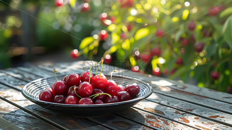 Close up of red cherries on a tree with the sun peaking through the leaves Royalty Free Stock Video Footage