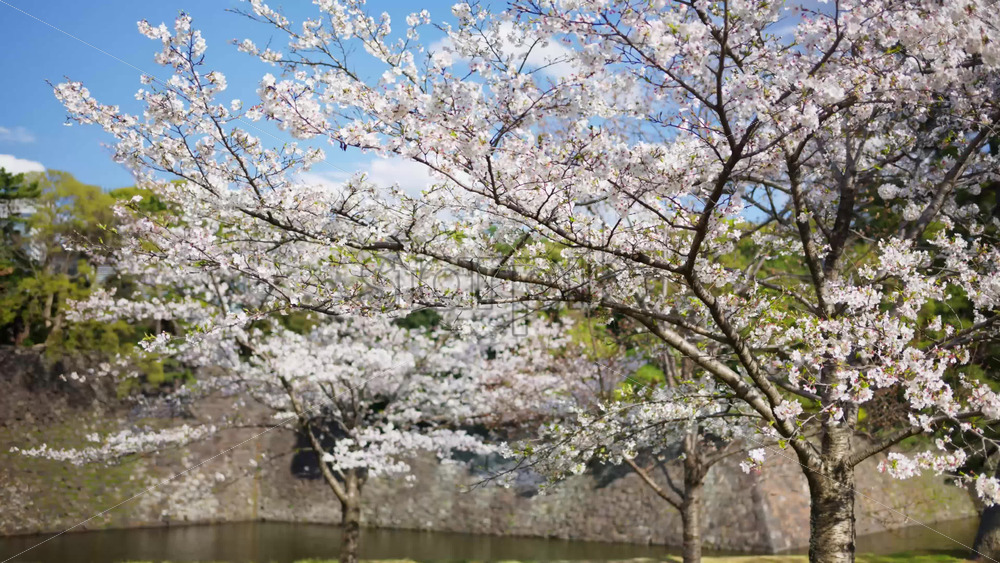 Cherry blossom trees in the Kokyo Gaien National Garden near the guest house in Chiyoda, Tokyo, Japan Royalty Free Stock Video Footage