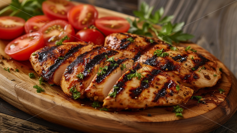 Home » Shop » Uncategorised » Chicken meat with tomatoes on a wooden bottom