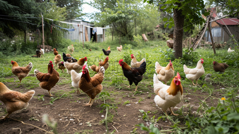 Home » Shop » Uncategorised » Chickens of different colors at a company in the village
