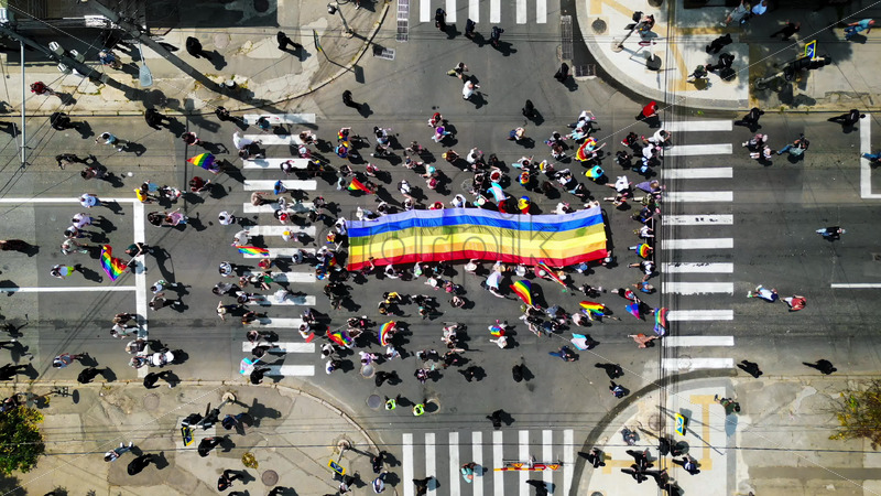 Aerial drone view of the rally in support LGBT community in Chisinau, Moldova Royalty Free Stock Video Footage