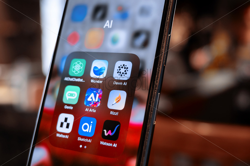 CHISINAU, MOLDOVA – APRIL, 2023: A phone with folder of AI based apps in it