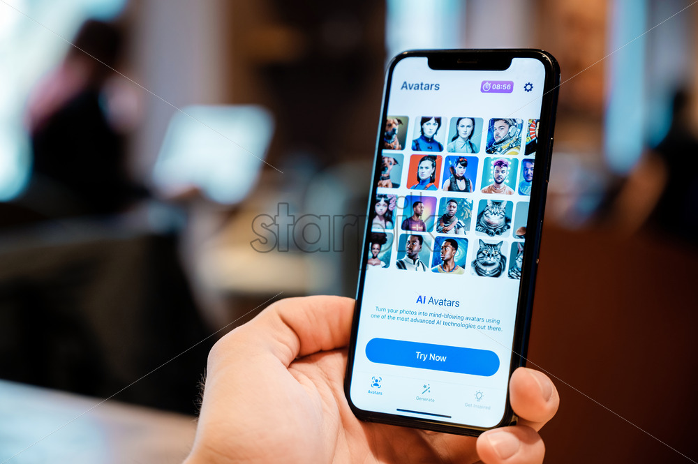 CHISINAU, MOLDOVA – APRIL, 2023: Man holding phone with opened Avatars – app powered with AI for helping with avatars creation