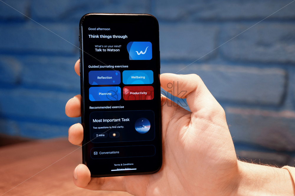 CHISINAU, MOLDOVA – APRIL, 2023: Phone with opened WatsonAI – productivity and journalling companion powered with AI