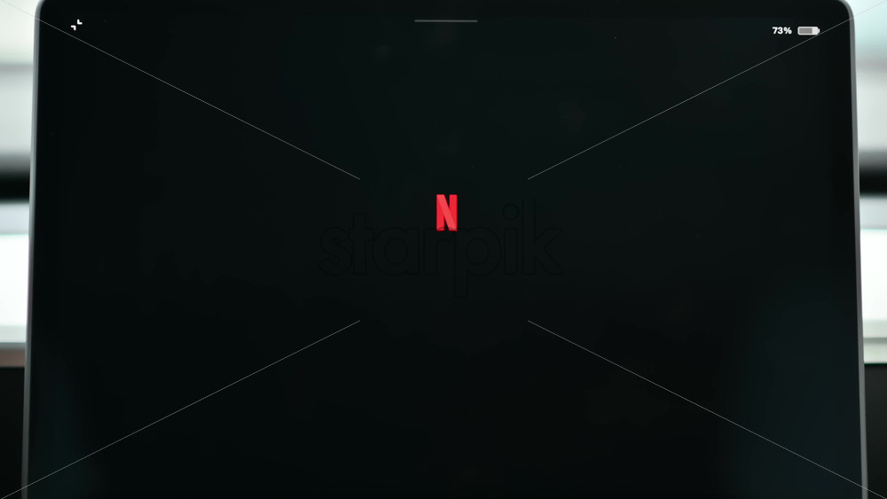 Chisinau, Moldova – January 23, 2024: Male hand opening Netflix application on the red Tesla Model 3 electric car. Light theme Royalty Free Stock Video Footage