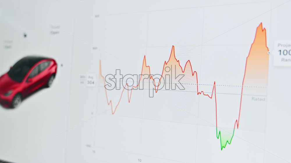 Chisinau, Moldova – January 23, 2024: Tesla Model 3 energy consumption graph on the touch screen inside the red electric car. Light theme Royalty Free Stock Video Footage