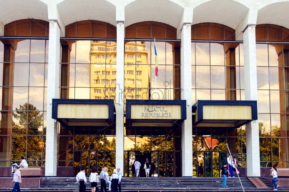 CHISINAU, MOLDOVA – JUNE 24, 2018: facade of the national palace with people Royalty Free Stock photo