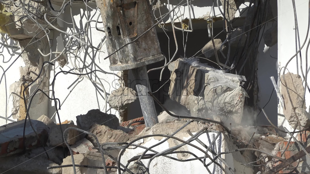 Chisinau, Moldova – June 6, 2025: An excavator demolishing concrete building with hydraulic breaker Royalty Free Stock Video Footage