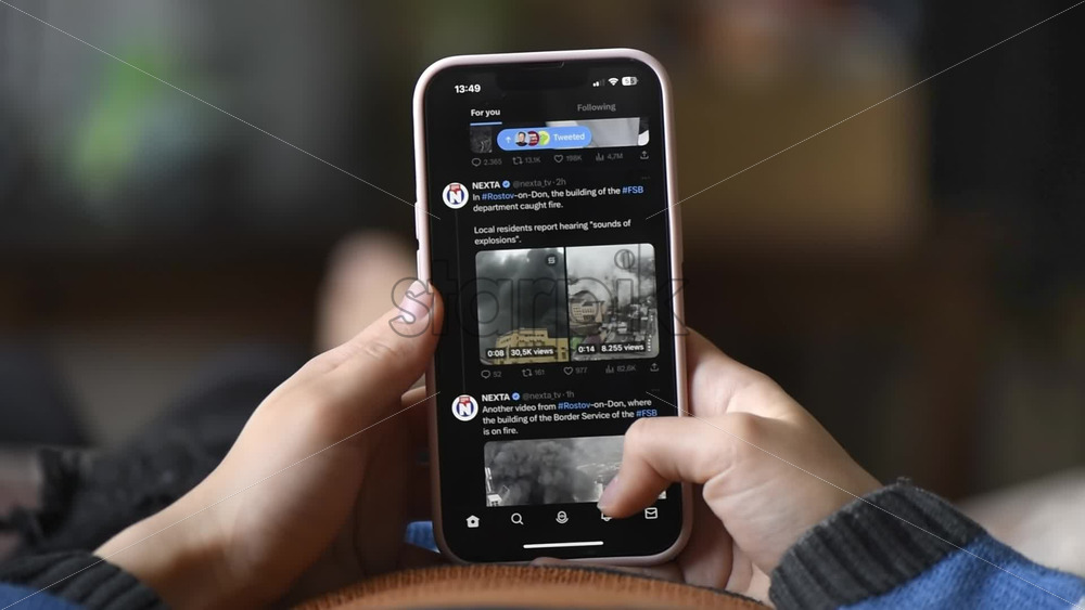 Video CHISINAU, MOLDOVA – MARCH, 2023: A person opening Twitter in his smartphone and starts scrolling the feed Royalty Free Stock Video Footage