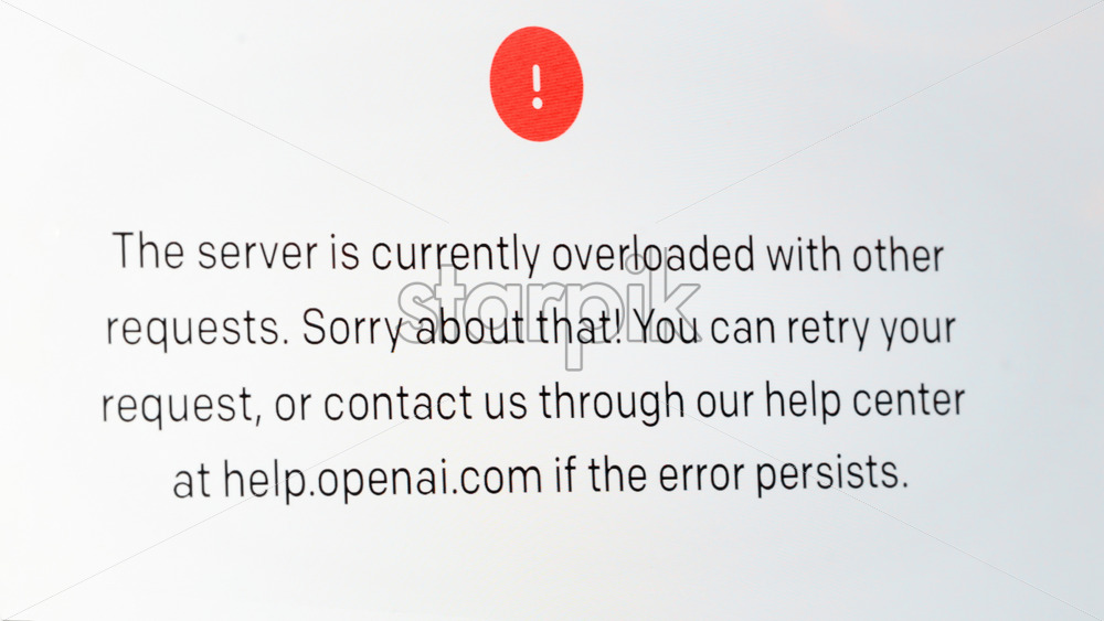 Home » Shop » photo » CHISINAU, MOLDOVA – MARCH, 2023: Information about OpenAi ChatGPT bot server is currently overloaded