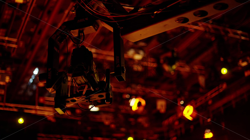 Chisinau, Moldova – March 29, 2024: Professional camera filming and flashing studio lights on the ceiling of a TV set Royalty Free Stock Video Footage Royalty Free Stock Video Footage
