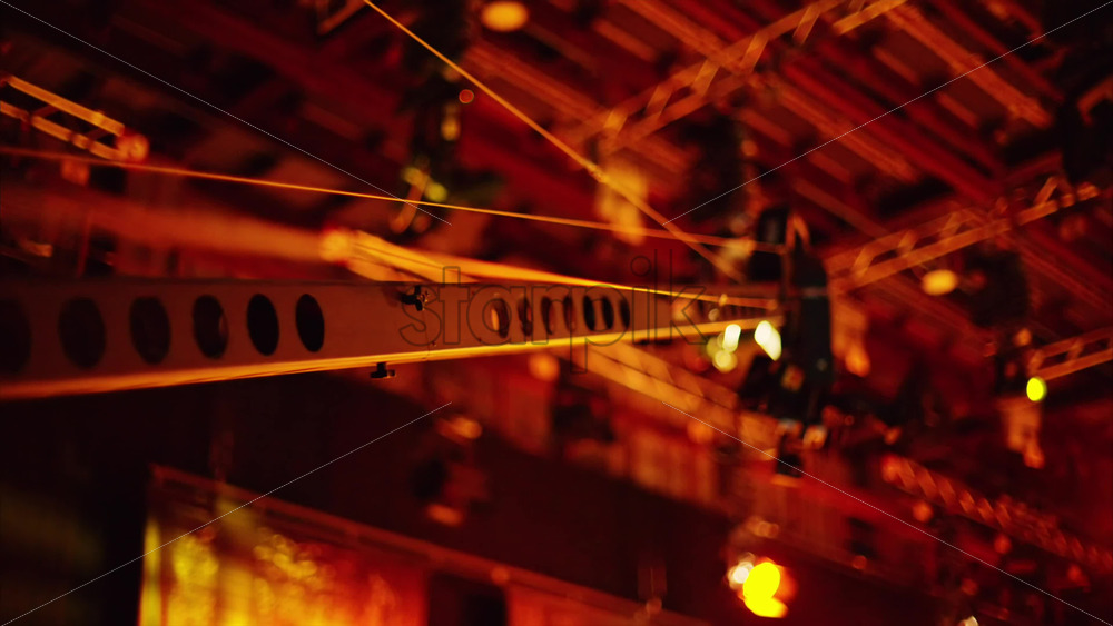 Chisinau, Moldova – March 29, 2024: Professional long camera filming and flashing studio lights on the ceiling of a TV set Royalty Free Stock Video Footage Royalty Free Stock Video Footage