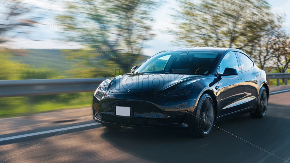 Home » Shop » photo » CHISINAU, MOLDOVA – MAY, 2023: Front view of a moving black Tesla Model 3 on a highway. Blurred background