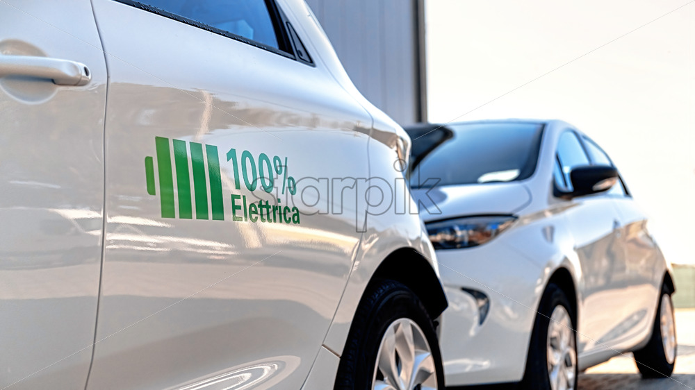 CHISINAU, MOLDOVA – NOVEMBER 3, 2021: Parked electric Renault ZOE with 100% Electric inscription on it