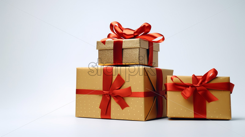 Christmas presents created from watercolor on a white background