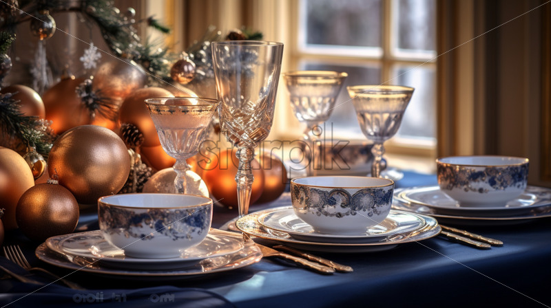 Home » Shop » Uncategorised » Christmas table setting during Winter time holidays. blues colors