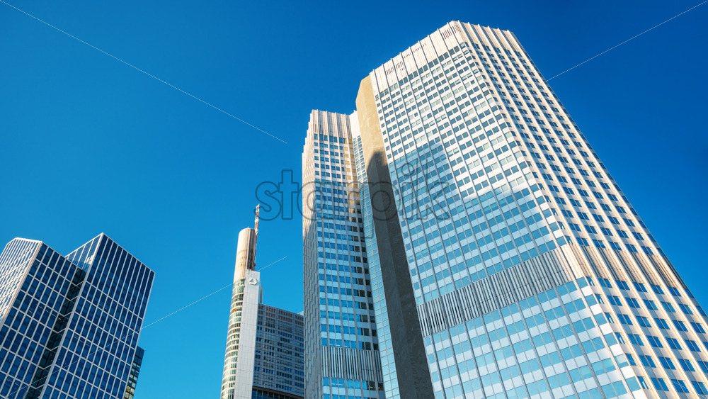 Bottom-up view of a skyscraper in Frankfurt downtown, Germany.