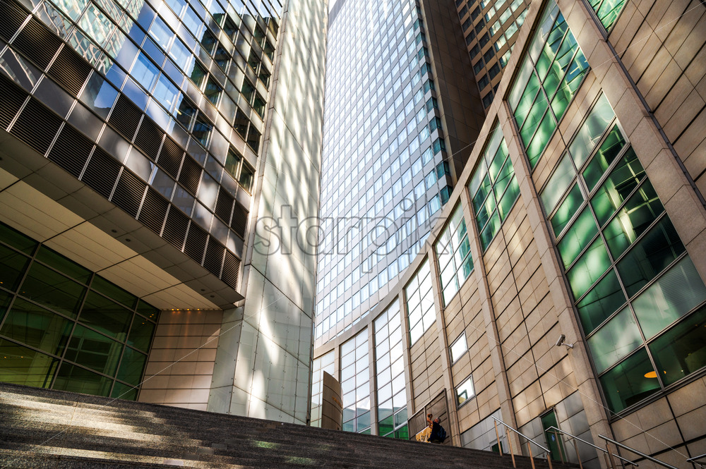 Bottom-up view of a skyscraper in Frankfurt downtown, Germany.