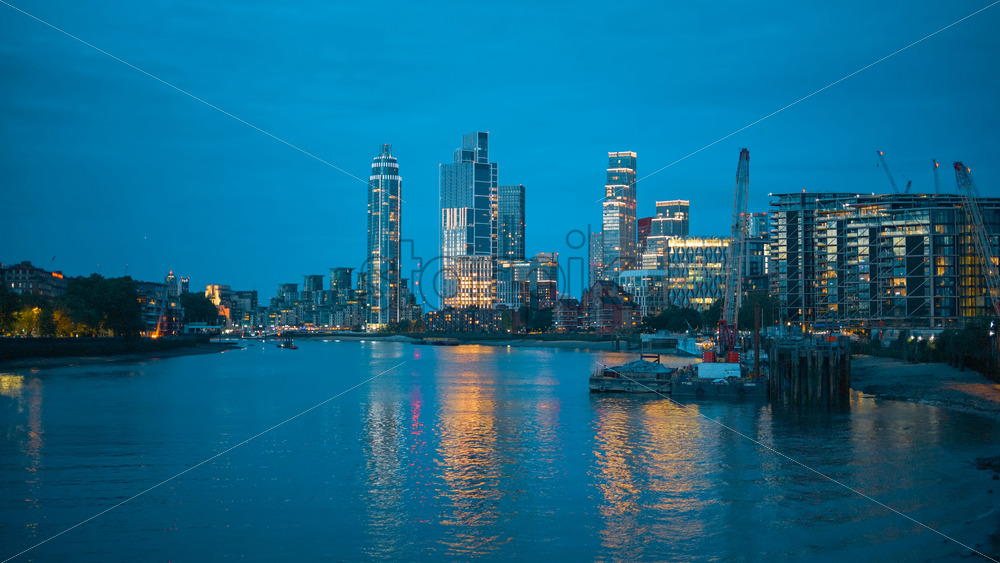 Home » Shop » photo » Cityscape of London at evening, United Kingdom. Thames river and skyscrapers with illumination