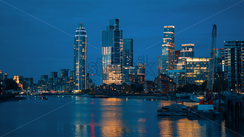 Home » Shop » photo » Cityscape of London at evening, United Kingdom. Thames river and skyscrapers with illumination