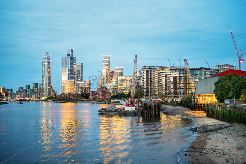 Home » Shop » city » Cityscape of London at evening, United Kingdom. Thames river with financial district with skyscrapers in the distance, illumination