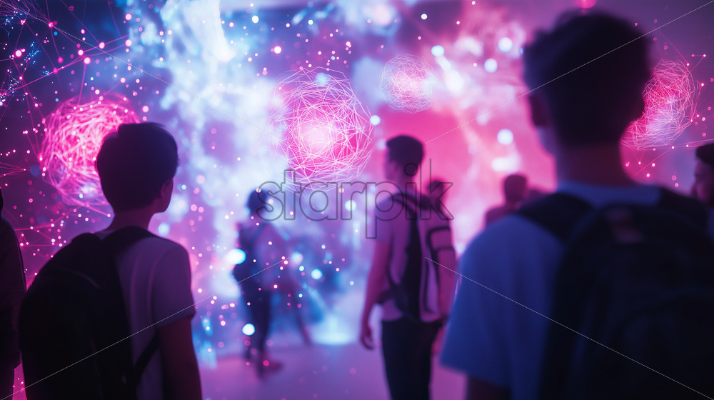 Home » Shop » AI Illustration » classroom of students in a quantum metaverse environment