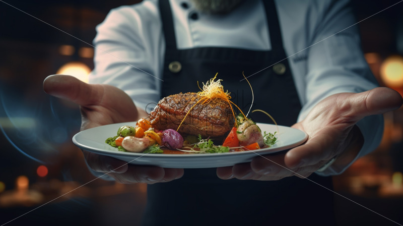 Close up chef hands offering special dish