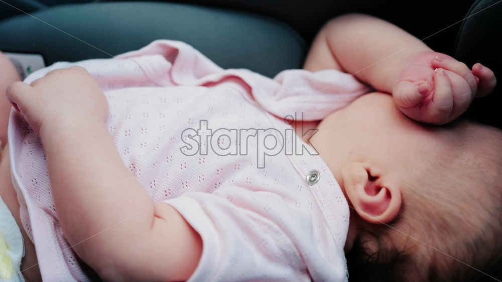 Close up of a baby wearing a pink outfit, peacefully sleeping with a hand near the face Royalty Free Stock Video Footage
