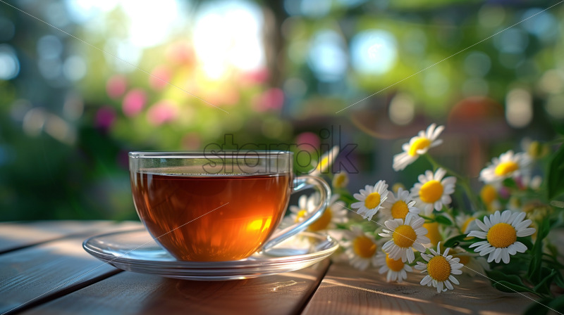 Close up of a glass of green tea on a wooden tray on a table Royalty Free Stock Video Footage