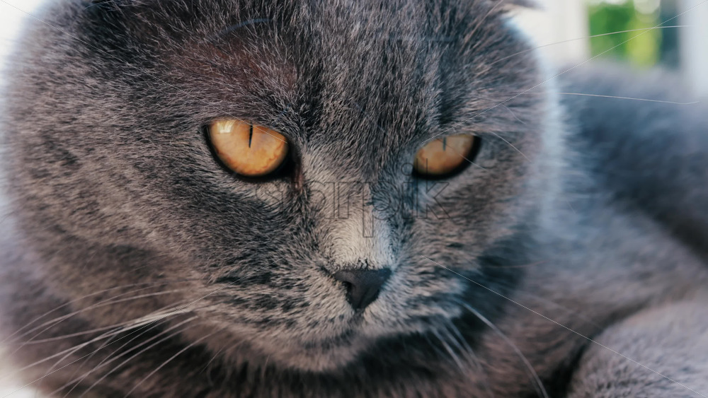Home » Shop » 1 Video » Video – Close up of a grey British Shorthair cat’s golden eyes with detailed fur and sharp reflection in the iris