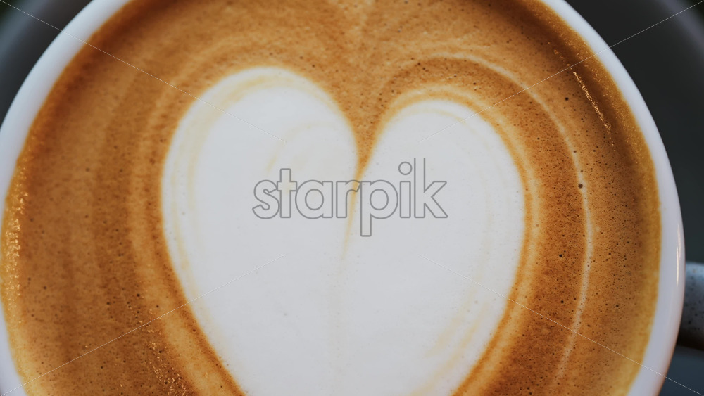 Close up of a heart made on a latte in a black cup Royalty Free Stock Video Footage