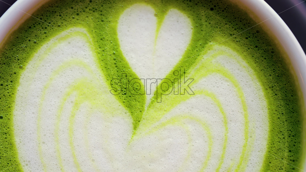 Close up of a matcha latte on a little green tray at a cafe Royalty Free Stock Video Footage