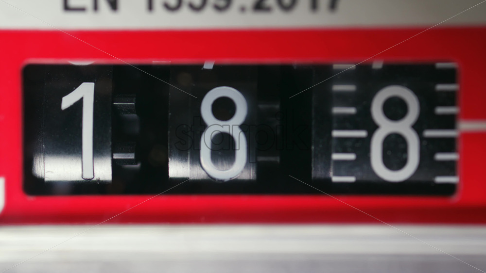 Close up of a mechanical counter displaying rotating numbers