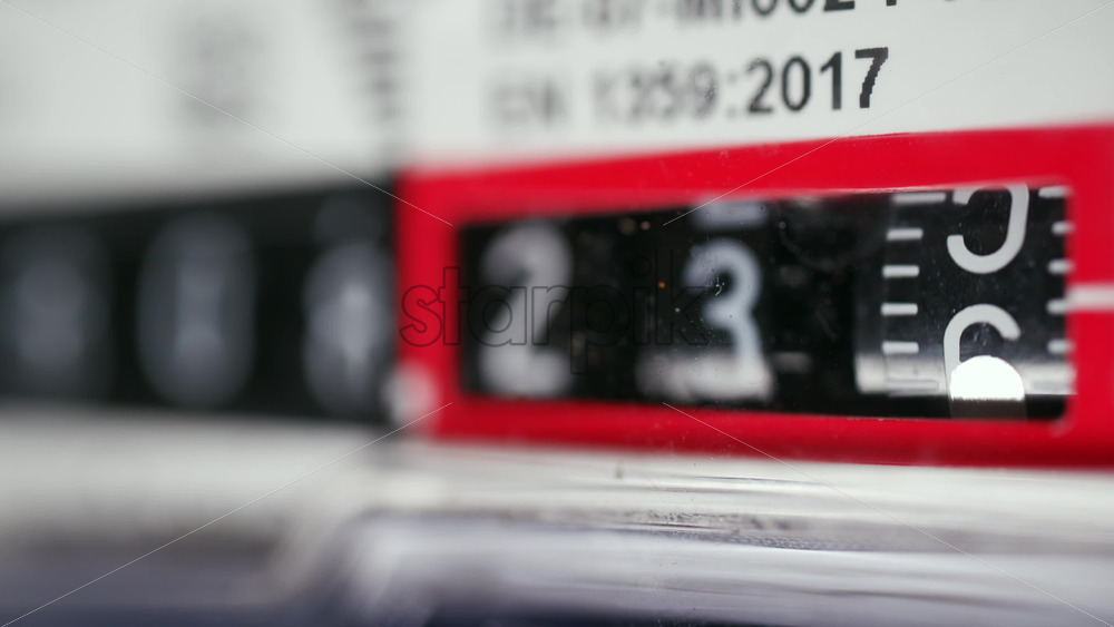 Close up of a mechanical counter displaying rotating numbers