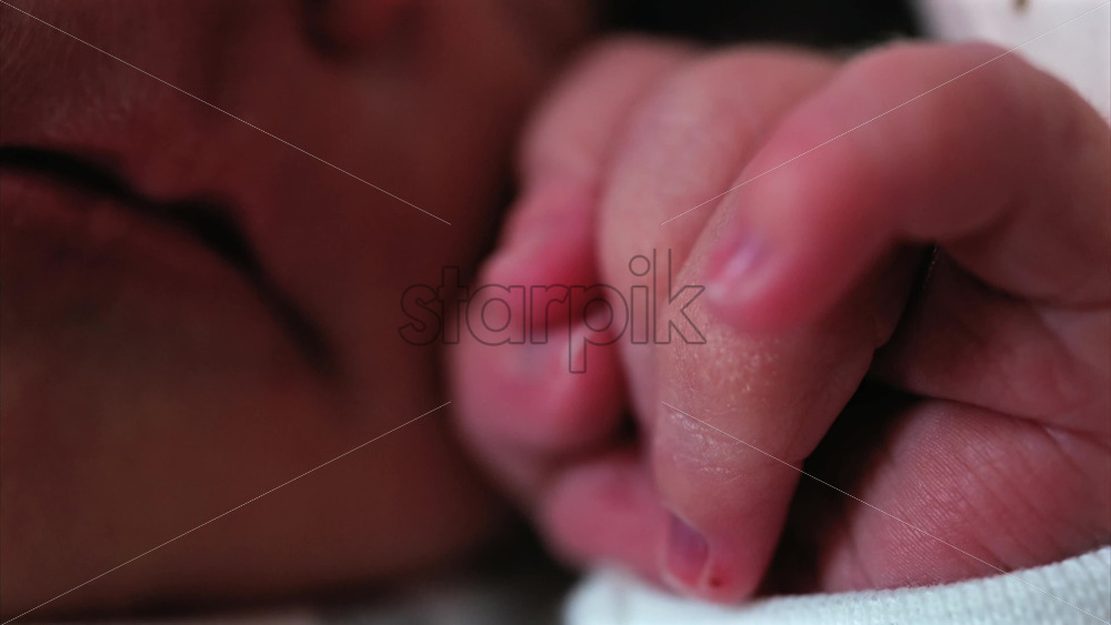 Close up of newborn’s hand gently clenched near the face, capturing delicate skin texture Royalty Free Stock Video Footage