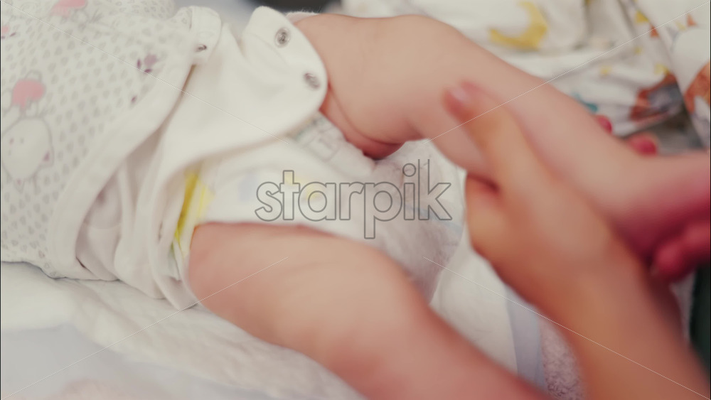 Close up of a parent’s hands massaging a baby’s legs Royalty Free Stock Video Footage