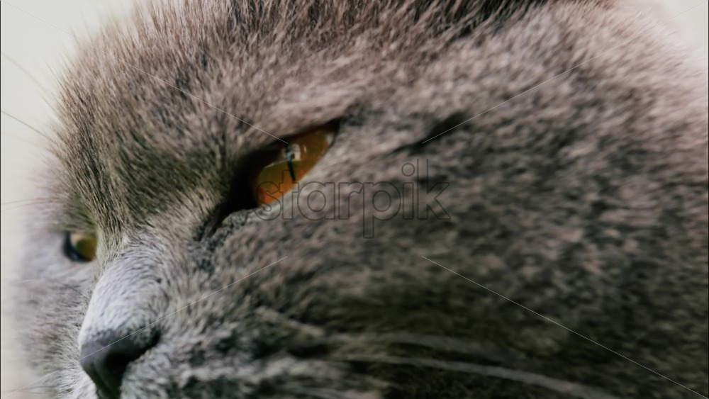 Close up of a Scottish Fold cat with orange eyes resting with a blurred background Royalty Free Stock Video Footage