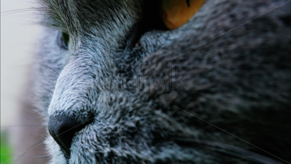 Close up of a Scottish Fold cat with orange eyes resting with a blurred background Royalty Free Stock Video Footage
