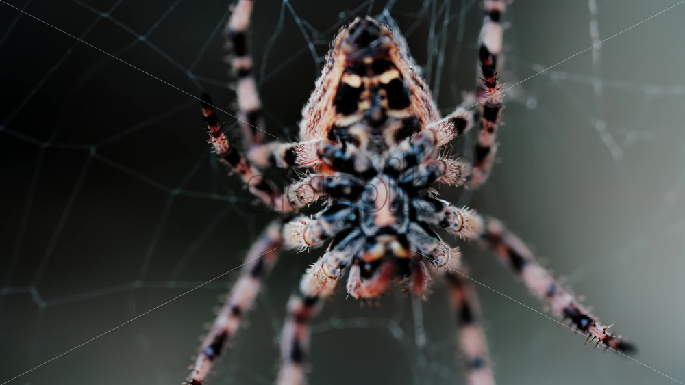 Home » Shop » 1 Video » Video – Close up of a spider sitting in its web, showing intricate details of its body and fine silk threads