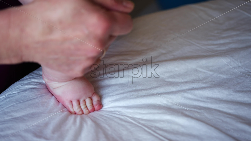 Home » Shop » 1 Video » Close up of adult hands gently massaging a baby’s foot and sole
