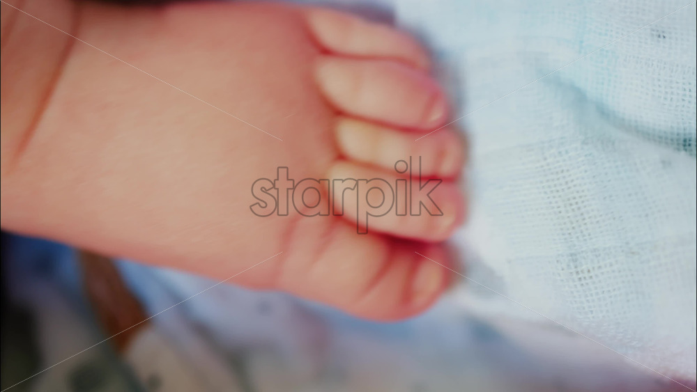 Close up of baby’s foot resting on a patterned blanket with natural light Royalty Free Stock Video Footage