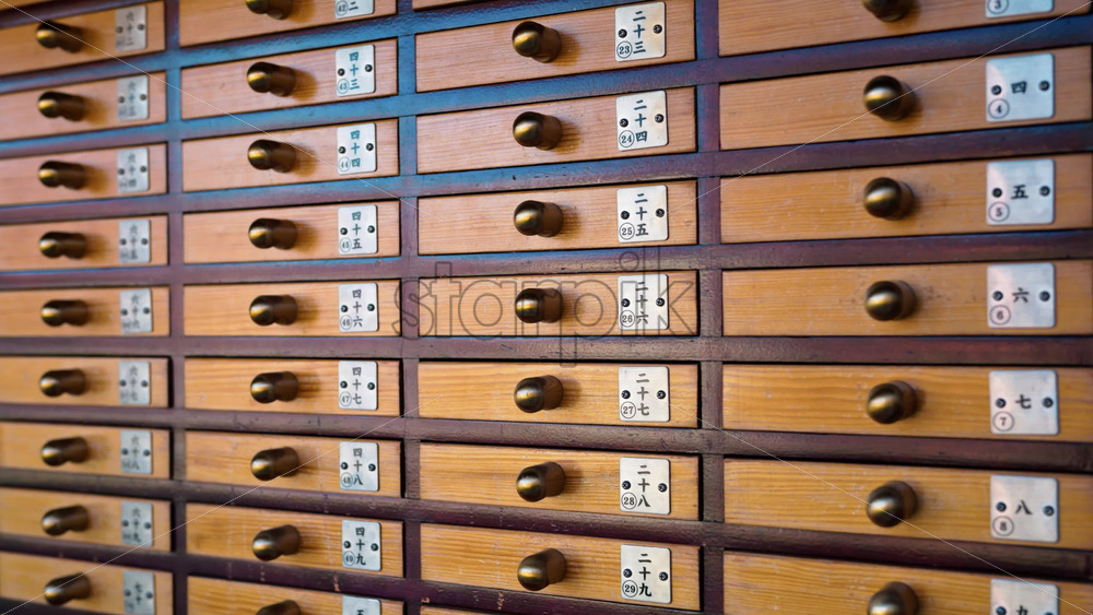 Close up of fortune drawers at the Senso-ji temple in Asakusa, Tokyo, Japan Royalty Free Stock Video Footage