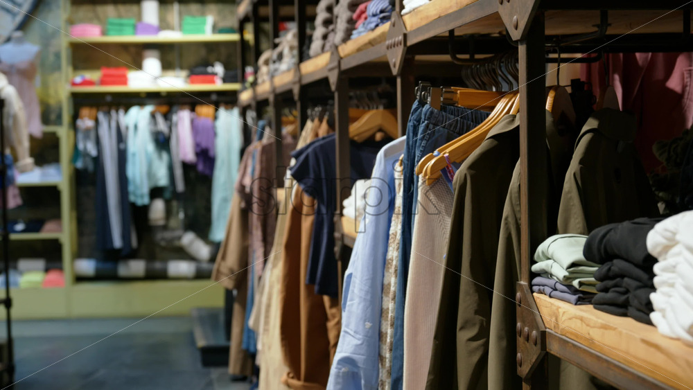 Cannes, France – August 4 2025: People walking on a shopping street with clothing racks lining the street and people browsing garments Royalty Free Stock Video Footage