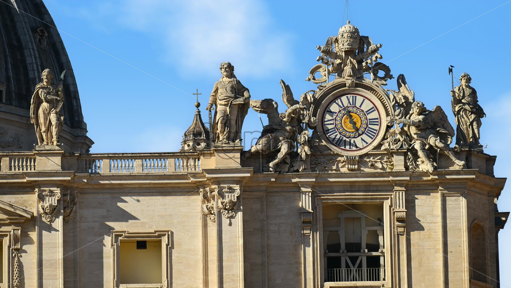Close up of one of two clocks atop of Saint Peter’s Basilica facade, Vatican City, Rome, Italy Royalty Free Stock Video Footage Royalty Free Stock Video Footage