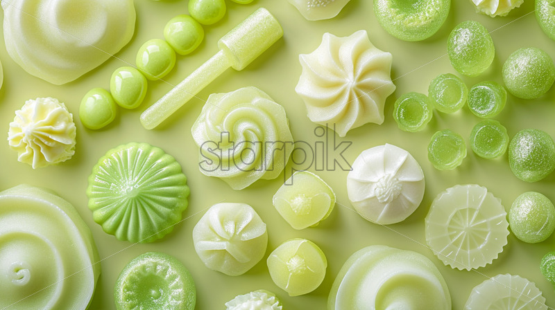 Close-up photo of a variety light green sweets