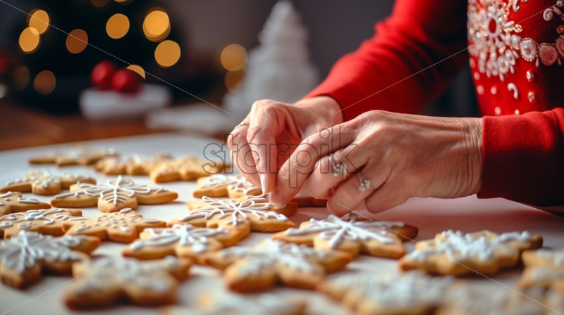 Home » Shop » Uncategorised » Close up woman hands preparing Christmas cookies on a tray