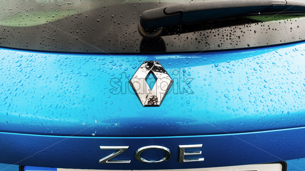 TRANSFAGARAS, ROMANIA – JULY, 2022: Close view of a rear Renault ZOE logo