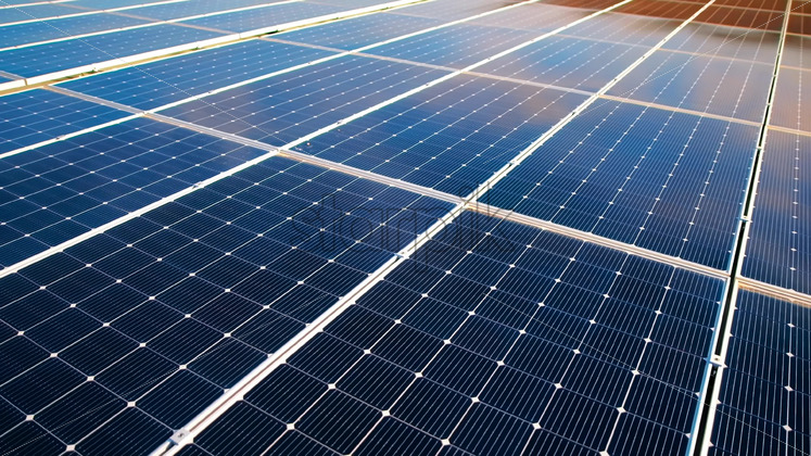 Home » Shop » technology » Video – Close view of multiple solar panels on the roof of a manufacturing building in nature. Ecology thematics